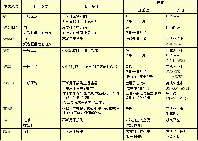 Types and characteristics of wire